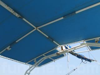 ワイドなオーニングにはスパンカーがセットされています。