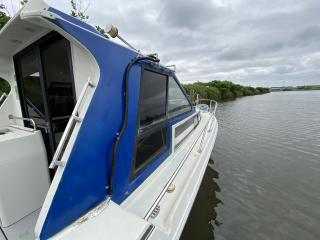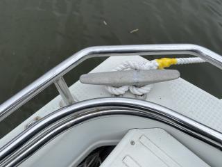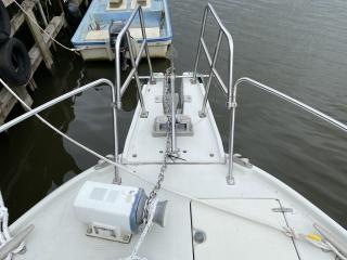 サイドはキャビンクルーザーとしては歩き易く、バウへの移動も比較的容易です。