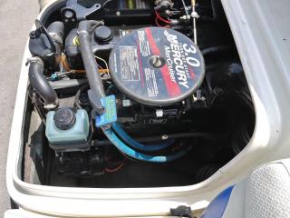 ◆エンジンは、マーキュリー製の直列4気筒直噴ガソリンエンジン「MCM 3.0L」(連続定格出力95PS/4,400rpm)を搭載しています。なお、この艇にはアワーメーターが付いていませんので正確なエンジンランタイムは不明です。また、アフトドライブもエンジンと同じくマーキュリー製で「ALPHA ONE」というシングルプロペラ仕様の物がセットアップされています。