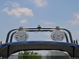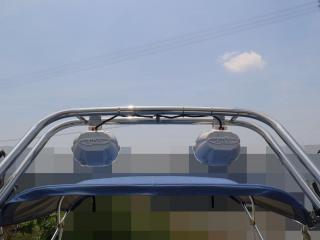 ◆ステンレス製のがっちりしたウェイクタワー、大型のトランサムステップ、格納式のスイムラダーも装備されているので、ウェイクボード、ウェイクスケートやバナナボートや各種チューブのトーイング(牽引)も楽しめそうです。