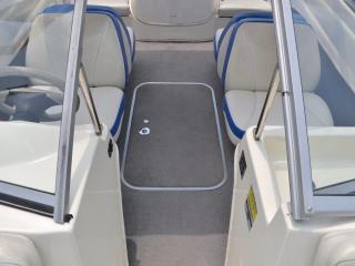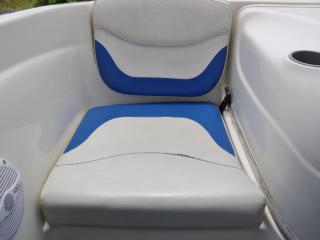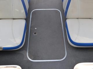 ◆バウからトランサムにかけてデッキセンターが通路になっており両脇にシートが備わっています。バウに2脚、キャプテンシート、パッセンジャーシート、そしてその背面に後方に向け2脚、トランサム側に2脚、計8脚に8名が座れる仕様です。