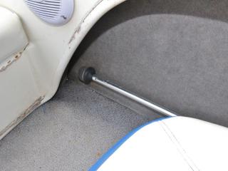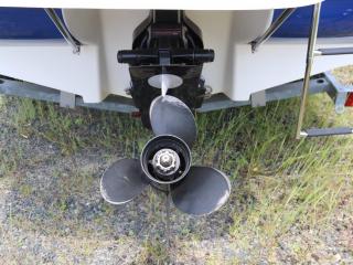 ◆アフトドライブもエンジンと同じくマーキュリー製で「ALPHA ONE」というシングルプロペラ仕様の物がセットアップされています。取材時は油圧ホース、パッキン類からのオイル漏れなどは無いように見受けられ、キャビテーションプレート、スケグ廻りには航行に大きな影響が出るような大きな曲がりや欠けも無いように見受けられました。なお、プロペラは先端に少し擦った跡がありますが大きな曲がりなどは無いように見受けられました。