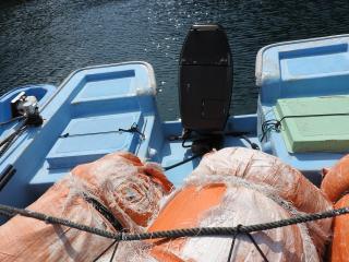 ◆船体は固い和船です、現在は使用されていません、フロートなどを置き保管されています、長年使用されていませんのでトーハツ80馬力のエンジンは現在使用できません、販売は現状での販売となります、ご承知置きください。ロープローラーは取り外しします。