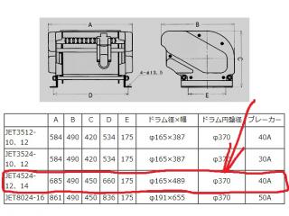 ◆型式はJET4524-12で24V仕様です。なお、φ12m/mのロープが200m巻けるようです。