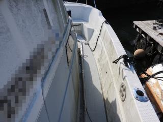 ◆ウオークアラウンドです、艫、サイドデッキなどは良好です、バウステップ前のバウデッキは塗装の跡が見えます。