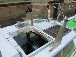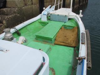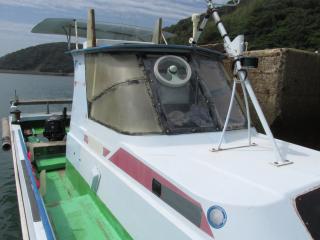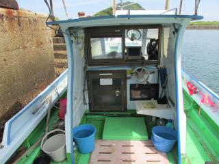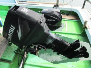 漁船タイプですが、取り回しの良い船外機搭載艇です。8馬力子機エンジンも付いてますのでトローリングもGOODです。