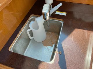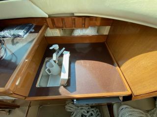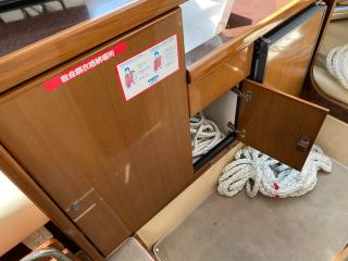 ギャレーにはシンクや冷蔵庫も装備されており、マリーナステイやクルージングの際には調理も可能です。