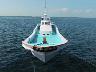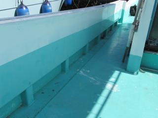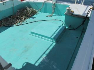 スピードも速く、フラットで広いデッキが特徴です。また、低燃費ですので、遊漁船にも向いています。