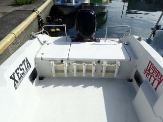 こちらの船は、ウェイクボート用に改造して使用されていたり、釣りなどオールマイティに楽しめる船とあって人気のある船ですが、こちらの艇は、普段より係留保管していますが、船外機を下げたままで係留していた期間があり、船外機のロアケース部分が、電食の影響により腐食しております。またロアケース交換だけでなくエンジンの載せ替え交換をされると、より安心してご利用できるかと思います。