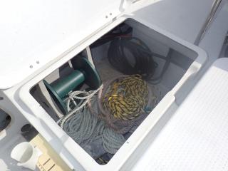 ○船首側は、ちょっとしたVバースとなっていますので、荷物などしまう事もできます。また、簡易トイレ・天井灯もありますが、見学時、作動の確認は行ってください。