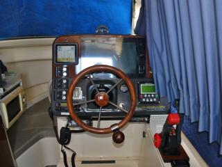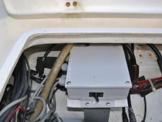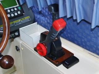 ◆アフトデッキからリアドアを開けて入るとすぐ右に舵リモコンが備わっています。アフトデッキの左舷側にはセカンドステーションも備わっていますが、このリモコンで右舷側でも操舵可能です。