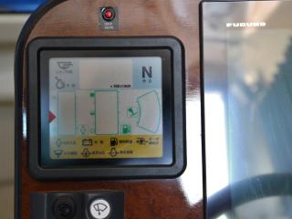 ◆コクピットも綺麗です。インパネ廻りにはトヨタ純正のエンジンモニター、レーダー、サテライトコンパスなどが艤装され、フルノ製14.1型マルチファンクションディスプレイにて鮮明な画像で確認可能です。また、オートパイロット、アマチュア無線も装備されています。なおフルノのGPS魚探が天井に装着されていますが、このGPS魚探はアフトデッキのセカンドステーションにも配線が施されており、そこに移設して観る事も可能です。