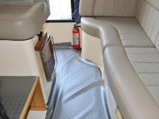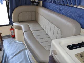 ◆コクピットのキャプテンシート、また、窓ガラスにはカーテンがあり、日頃、日光が入らないように留意されている為、後部のベンチシートも破れなども無く綺麗な状態問題無いように見受けられました。なお、ベンチシートには3~4人程度座れそうです。また、ベンチシート下には2KWのDC-ACインバーターが備わっています。