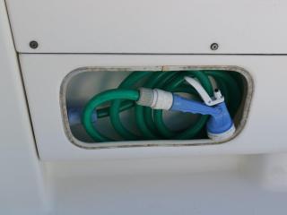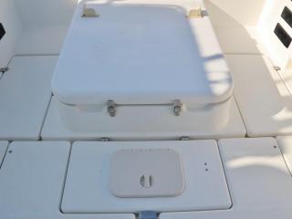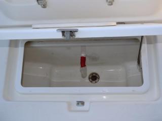 ◆リアドア下には循環式のイケスも備わっています、また、アフトデッキ両舷には電動リール電源もあります。