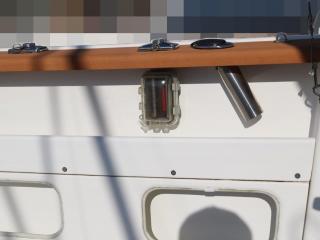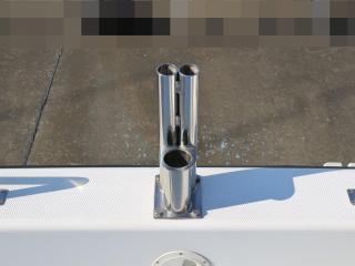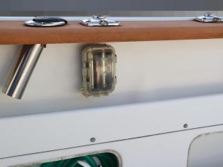 ◆アフトデッキ右舷側にはデッキウォツシュも備わっています。また両舷に埋め込み式のロッドホルダーも備わっています。なお、スパンカーは写真No,29のスパンカー台に装着可能です。スパンカーにつきましては次項の「付属品」にてご確認下さい。