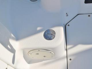 ◆エンジンは当時、プレジャーボート向け国産エンジン初の「コモンレールシステム」を採用したトヨタ製過給機付きDOHC直列4気筒直噴ディーゼルエンジンM1KD-V(連続最大出力170PS/3,300rpm)を搭載しています。また、取材時のエンジンアワーメーターは約982時間でした。なお、ドライブはヤマハの二重反転プロペラ(デュアルプロペラ)仕様です。取材時に試乗はさせていただいておりませんが最高速は30ノット程度出ると推測されます。
