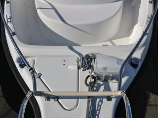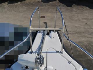 ◆フロントデッキのバウレール、アフトデッキのレールももしっかりしていました。なお、この艇はバウスプリット形状になっており、アンカーと電動アンカーウィンチが装備されています。