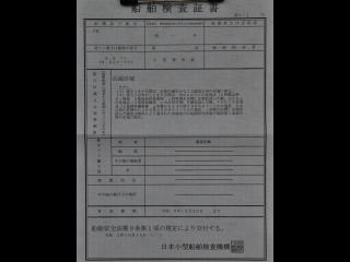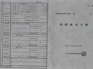 動力漁船登録票及びJCI検査証書・検査手帳及び船体銘板
