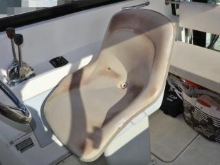 ◆操船席からの見切りは良く、操船し易そうでした。キャプテンシートも汚れはあるものの、使用には問題無いように見受けられました。なお、キャプテンシートの後方には2名が座れる純正のベンチシートも備わっています。