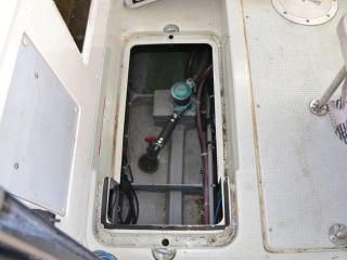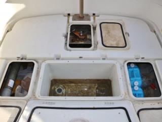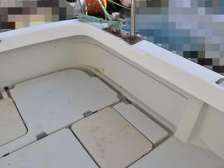 ◆船体は船齢なりの経年劣化と傷がありますが、全体的に航行に大きな影響があるような大きな損傷は無い様に見受けられました。また、この艇は係留保管ですので取材時は船底の様子は確認できていませんが、オーナー様が2020年にドック揚げされた際には特に問題は無かったとの事です。