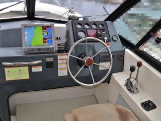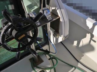 ◆操舵廻りはにはヤマハのGPS魚探が装備されており、取材時には動作する事を確認しました。