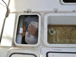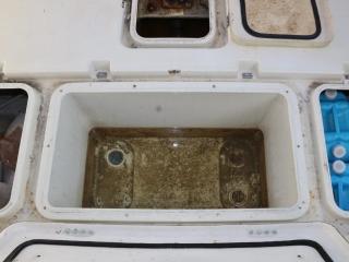◆フロントデッキにはアンカーロープストレージ+もう一つストレージがあります。なお、イケスはアフトデッキに一間あります。