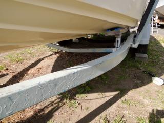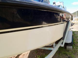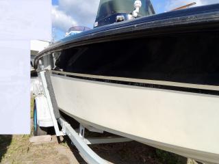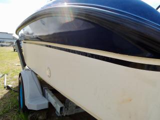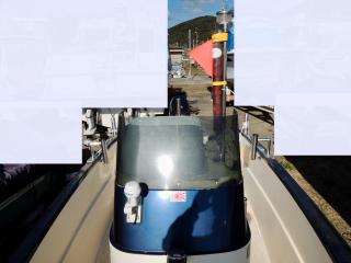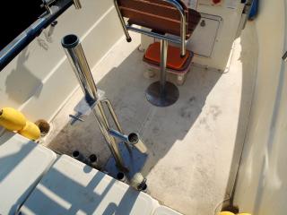 状態◆デッキ上も、ハル同様にコンディションは良いですが、縁部分の左右ロッドホルダー・センターポールは取材後に取り外されており、補修が必要な状態です。