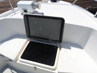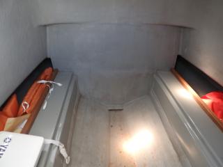 ◆艫に3間のストレージがあります、右舷側にバツテリー、メーンスイッチがあります、左舷は物入れです、中央に大型でFRP製の燃料タンクを納めています、オーナー曰く容量は正確に測定していませんが約150Ⅼくらいの容量のようです。