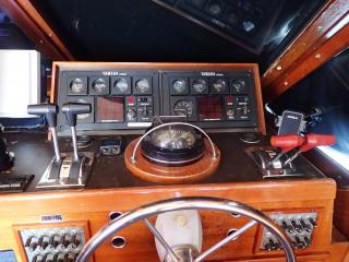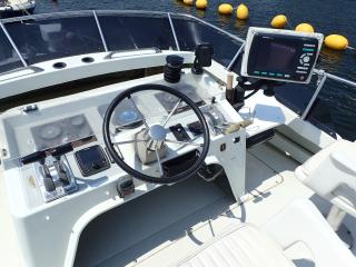 ●FB操船席にはコンパス、GPS魚探(YAMAHA YFV-10TD)、レーダー(FURUNO)、各種無線、サーチライトコントロール、フラップコントロール、ウィンドシールド等が装備されています。