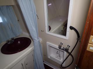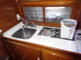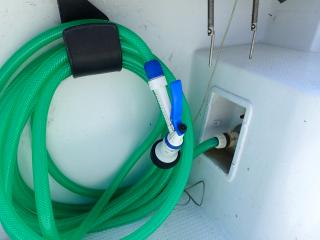 ●陸電システム、デッキウォッシュや清水シャワーも完備。海水浴などで活躍してくれます。また、陸電に切り替えてマリーナでもエアコンの使用が可能です。