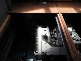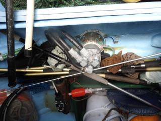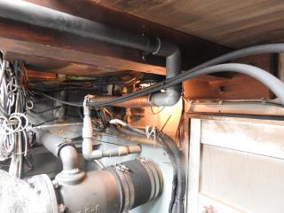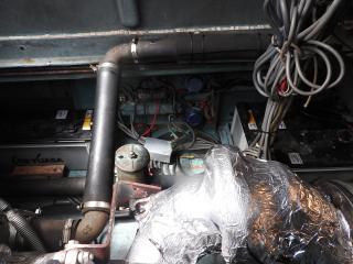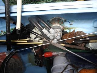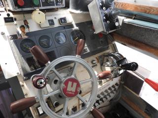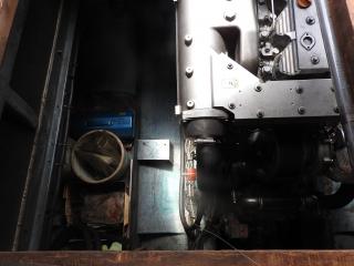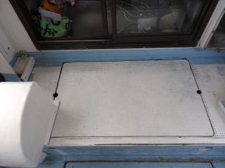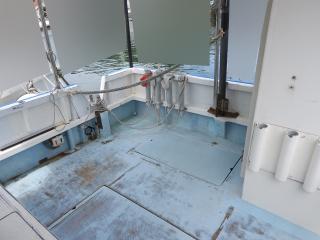 ◆キャビン内にもろもろの機器類を納めています、エンジン場の上は敷板があります、物置に使用されています。