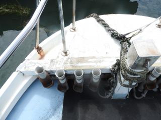 ◆前方のレールに取り外し可能な差し込みの波よけがあります、デッキからの高さもありますので安全性はあります。