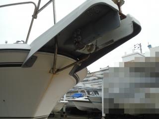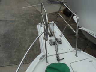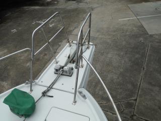 ◆バウスプリットは目立つあて傷もなく良好です、電動ローラーがあります、バウレールも固く取り付けられています、バウでの作業、釣りなどに安全性を確保されています。