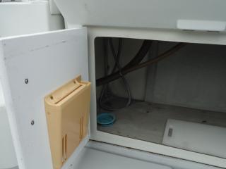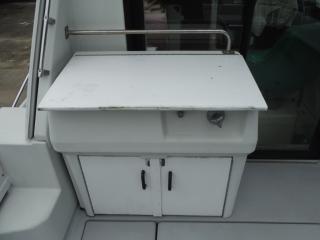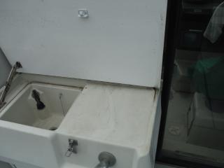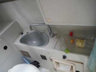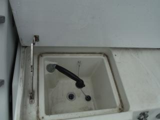 ◆リアドアの前、左舷側に流し台があります、調理などもできるようです。