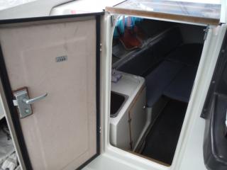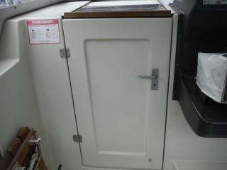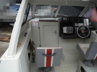 ◆キャビンはハードトップです操船はしやすそうです、キャビンの入口は左舷側にあります。