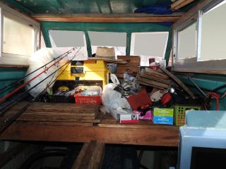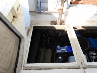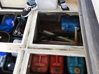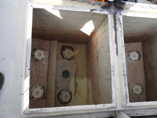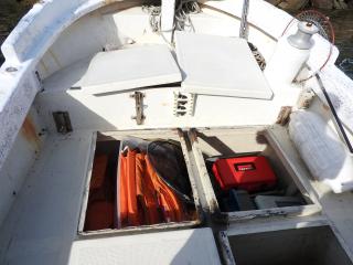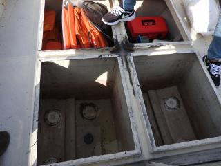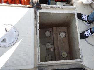 ◆フロントデッキのイケスは広く大型です、4間のうち2間は物入で使用されています。