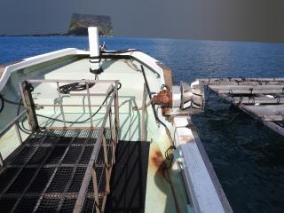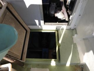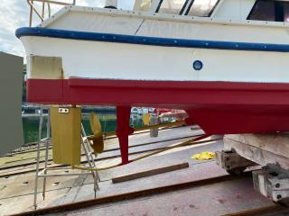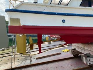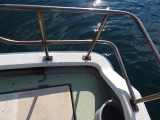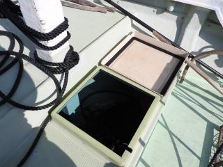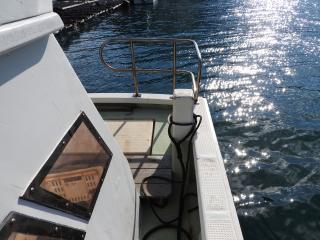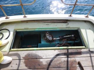 ◆艫デッキは舵場があります、シリンダーなど良好です、ペラの上あたりに覗き窓があります。