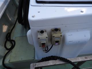 ◆配電スイッチ類は右舷側、透明なアクリル蓋の中にあります。