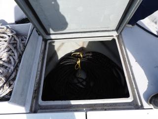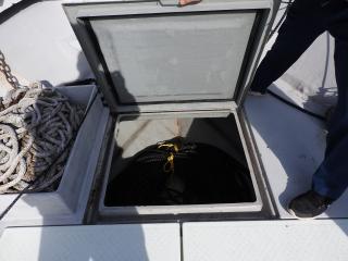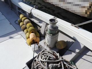 ◆左舷にステンレスの錨、と電動ウィンチがあります。