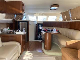 この度ご紹介する艇はカーバー440スポーツサロンクルーザーにアウトリガー、センターリガーファイティングチェアーが装備されています。
