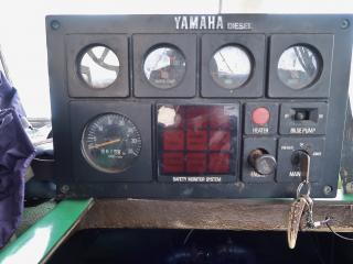 ◆エンジンはヤマハのインタークーラーターボ付き4気筒ディーゼルエンジン、D380KUH(72X)が搭載されています。船舶検査手帳の連続最大出力は130PS/2900rpmです。なお、取材時のエンジンランタイムは5615時間でしたがワンオーナー艇ではありませんのでこの数字が正確か否かは不明です。なお、このエンジンのマリンギアは微速装置付きです。