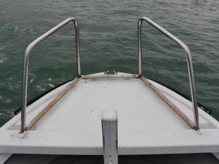 ◆ブルワーク両舷が高くなっていますがこれは全オーナーが加工された物のようです。好みは分かれるところですが、安心感としぶき低減には一役買っていると思われます。