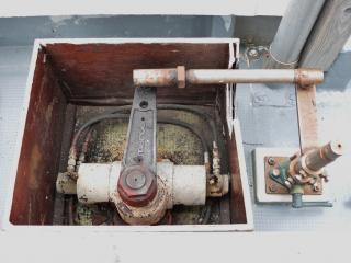 ◆舵箱はトモのデッキ上にあります。油圧操舵部のオイル漏れも無いように見受けられました。