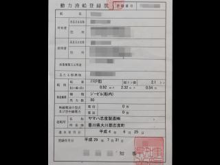 動力漁船登録票及びJCI検査証書・検査手帳・船体銘板