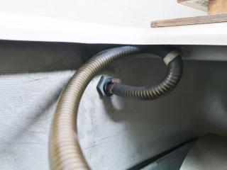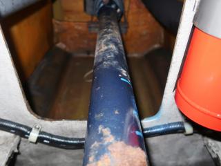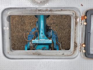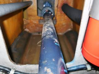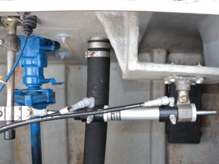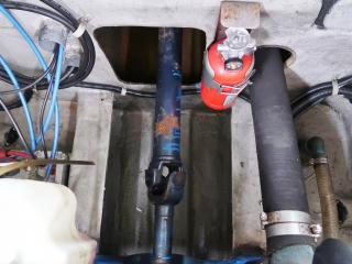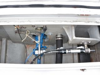 ◆アフトドライブはヤマハ製「MU-1」です。シンプルな手動引き上げ式ですので、油圧チルト式のようなシリンダーはなく、チルト機構の故障リスクは低いと思われます。なお、チルトアップは写真No.16のサブタを開けて本体を手で引きあげる構造になっています。