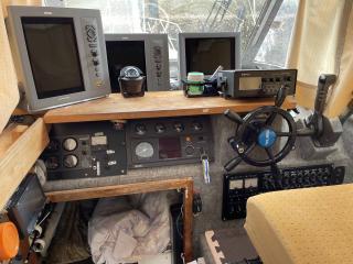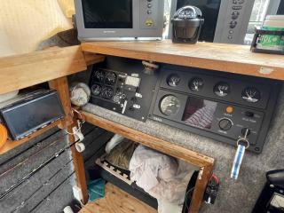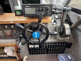 レーダー、GPS、魚探、3連リモコン、オートパイロット、自動アンカーなど、プロ仕様の航海計器類です。