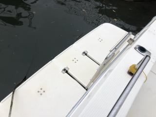 ○トランサムゲートは問題なくきっちり開閉できます。各所ハッチの開閉も問題ありません。アフトギャレーや生け簀もあります。