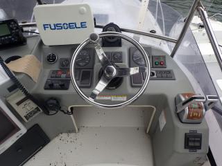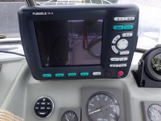 FB操船席にはコンパス、GPS魚探・ステレオ・マリンVHF・マイク・トリムタブコントロール・ウィンドシールド等が装備されています。