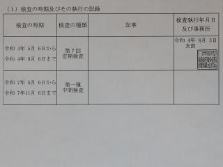 【更新情報】令和7年に定期検査を受検しております。
