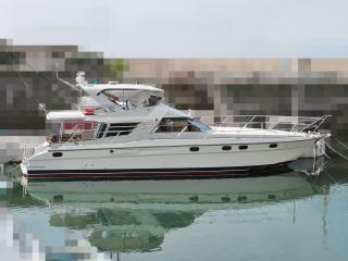 ◆この船は船舶検査手帳、船体のコーションプレートによりますと昭和62年8月進水の「フェアライン53」と思われます。なお、この船は日本小型船舶検査機構(JCI)の登録船です。